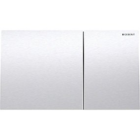 Geberit Sigma70 betjeningsplade: Børstet, easy-to-clean-belagt. Front betjening. Trykstænger lydisoleret, hurtigindstilling uden værktøj. Til skyllestyring på Sigma indbygningscisterner